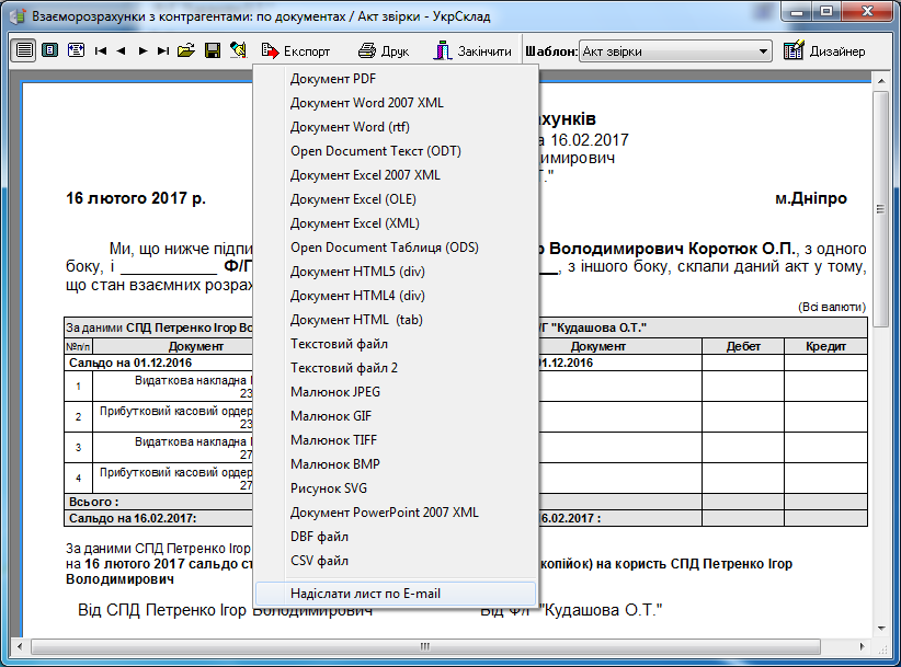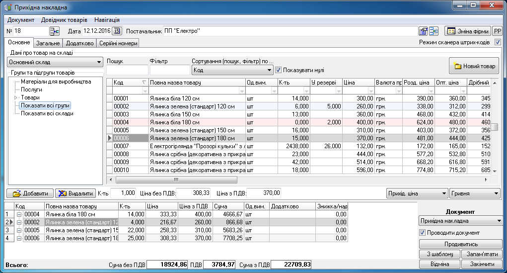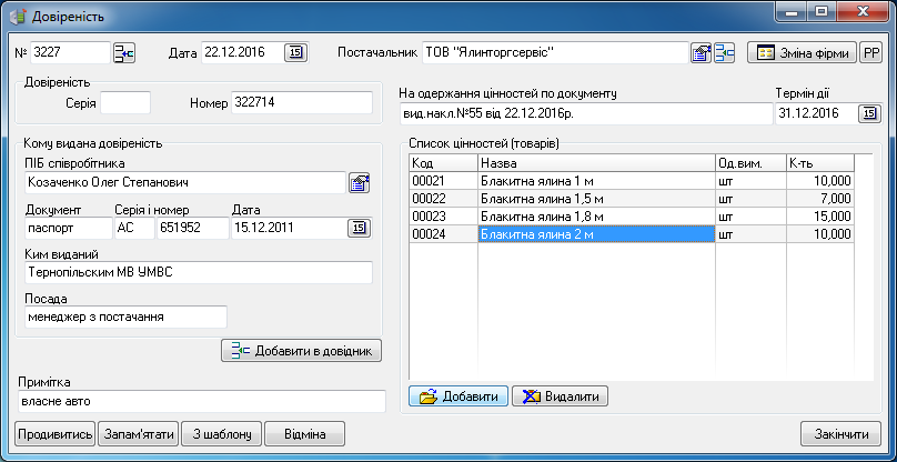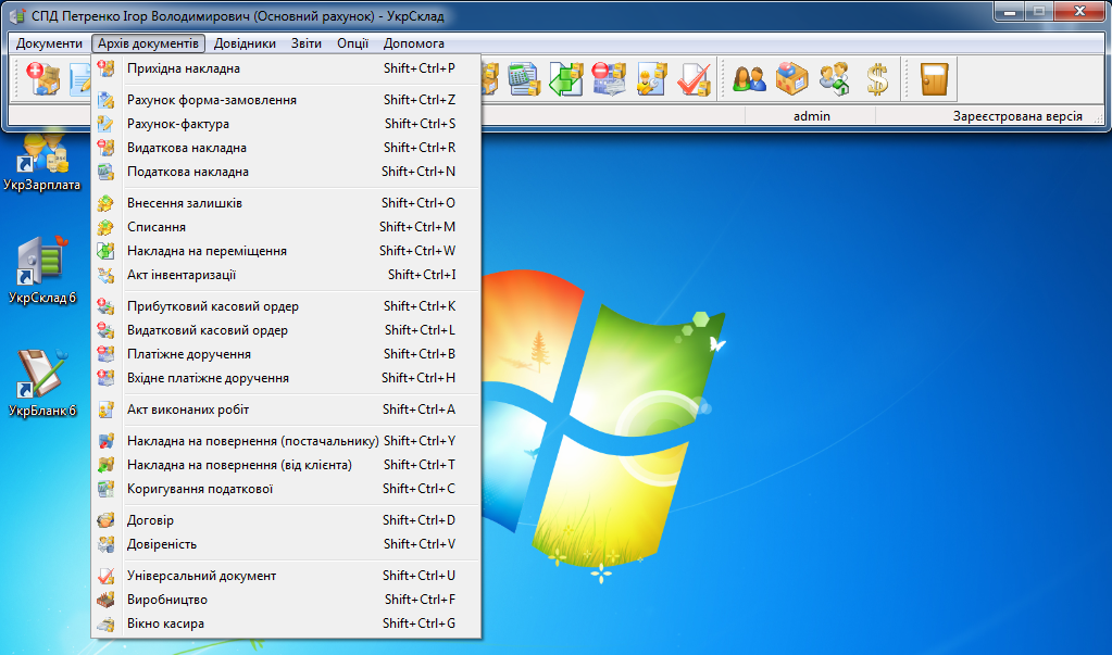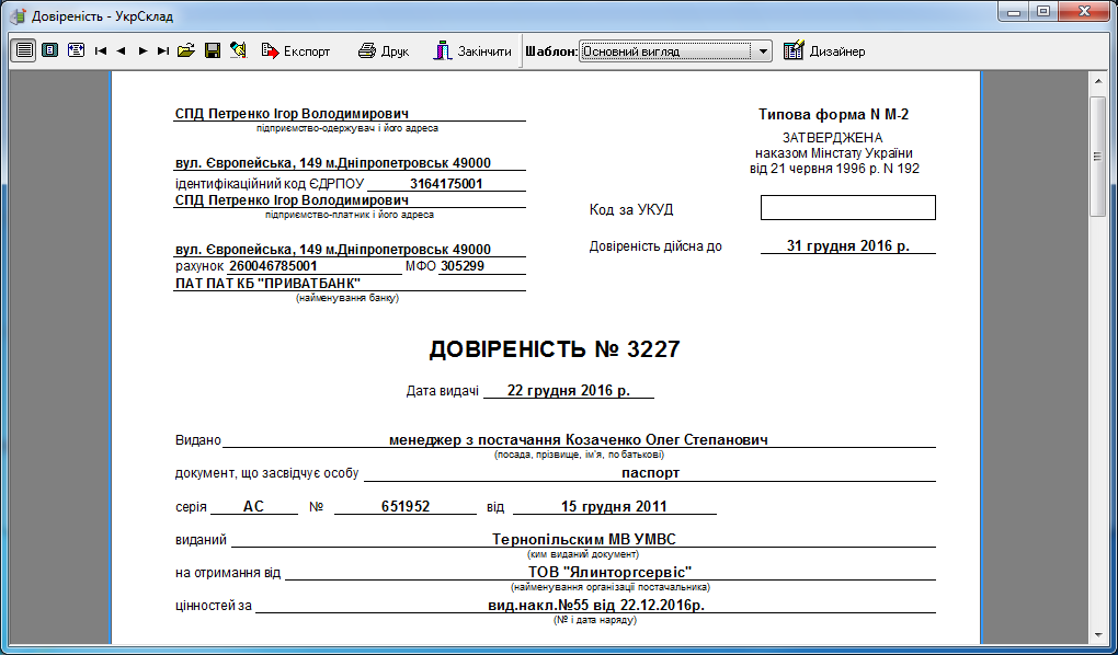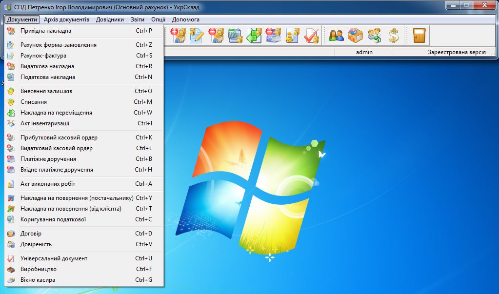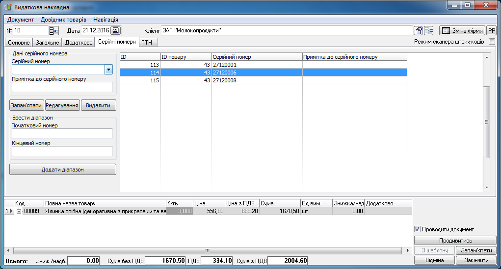 Зовнішній вигляд програми на весь екран (виписка видаткової накладної)