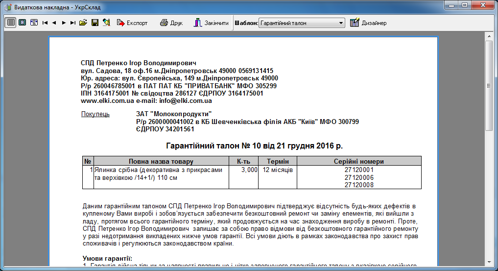 Гарантійний талон: попередній перегляд з Видаткової накладної