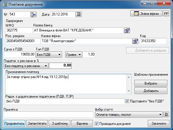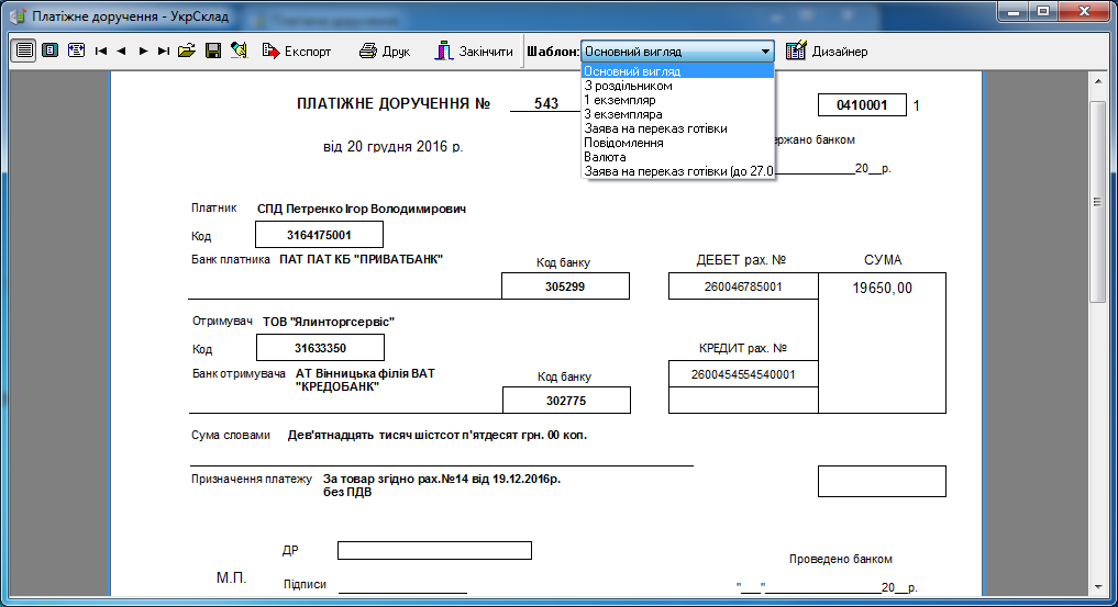 Платіжне доручення : попередній перегляд, вибір друкованої форми
