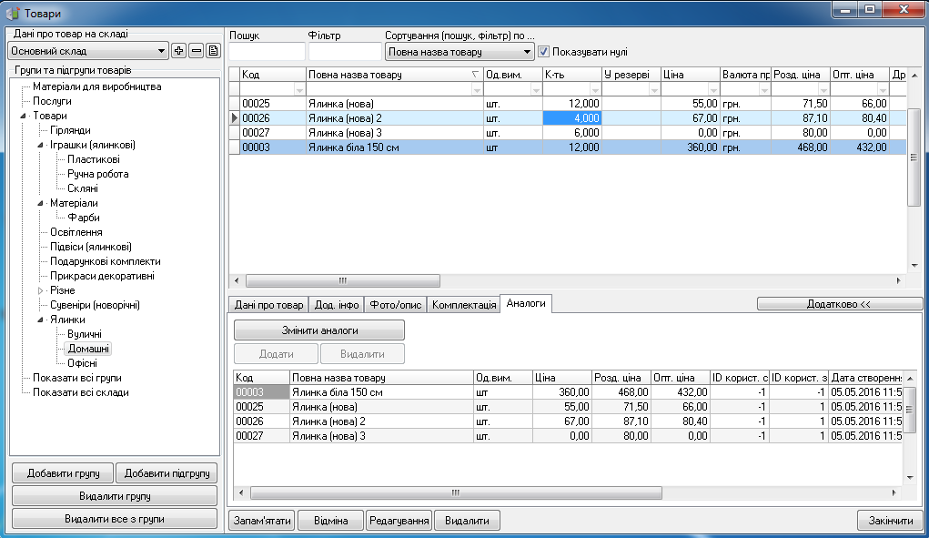 Довідник Товари : вкладка Аналоги (показати аналоги в списку F8)