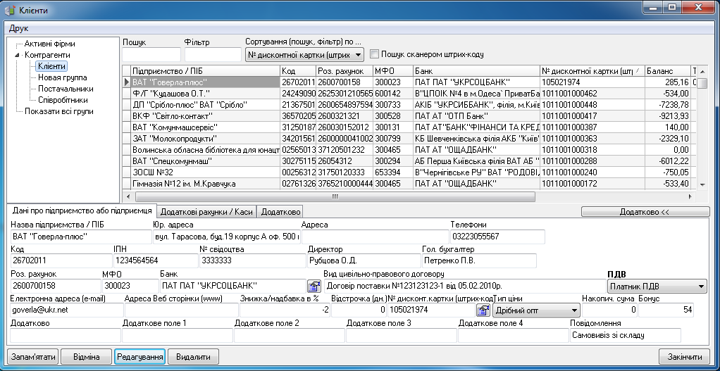 Довідник Контрагенти (Клієнти, Постачальники, Співробітники)