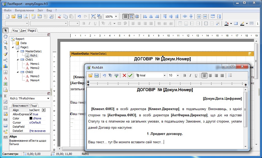 Довідник Шаблони договорів: редагування друкованої форми шаблону договору